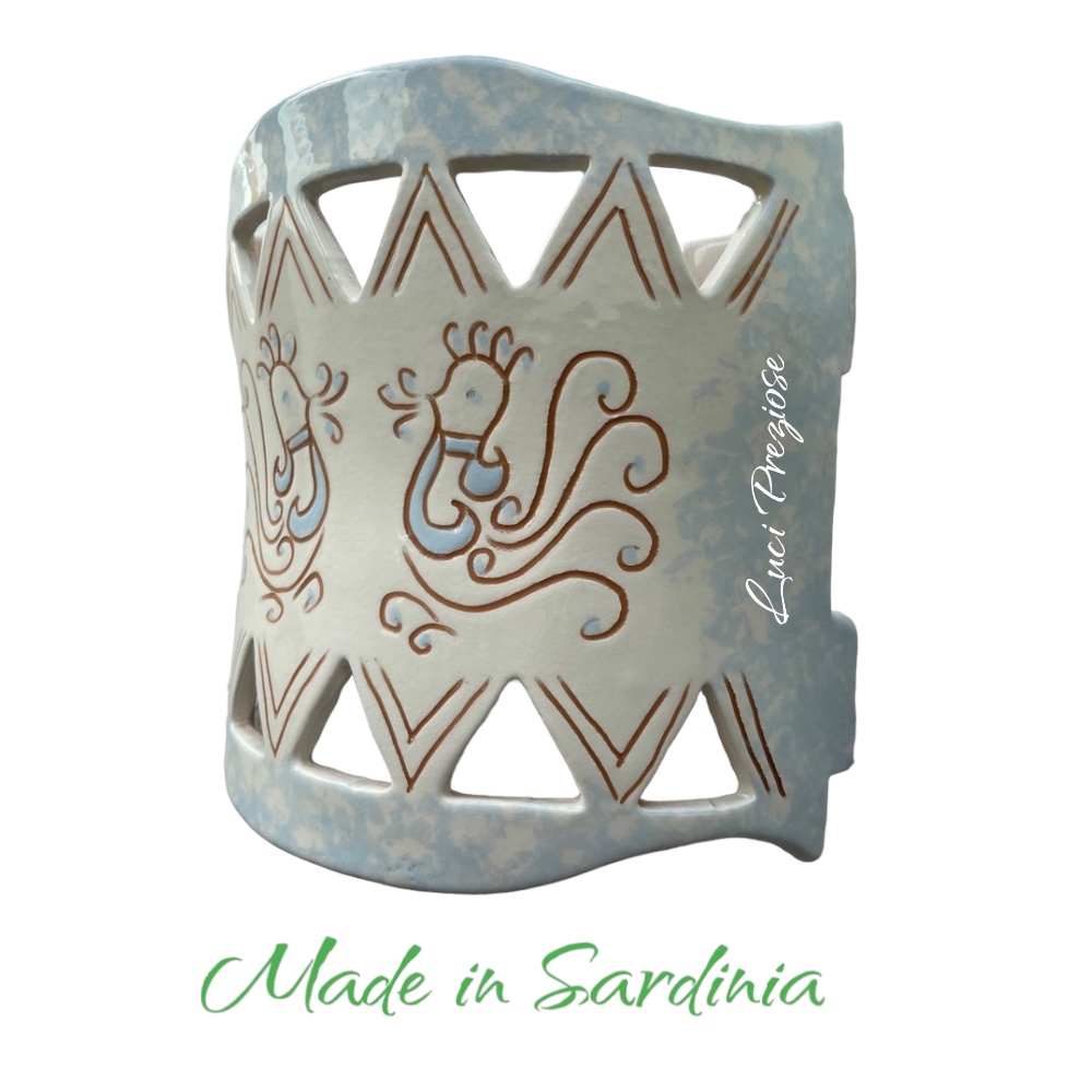 Ceramica lavorata e disegnata a mano nei colori bianco,cotto e celeste
