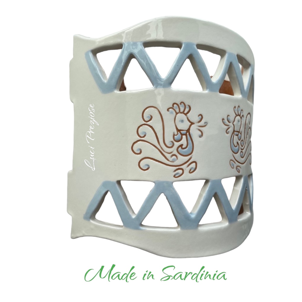 Ceramica lavorata e disegnata a mano nei colori bianco,cotto e celeste