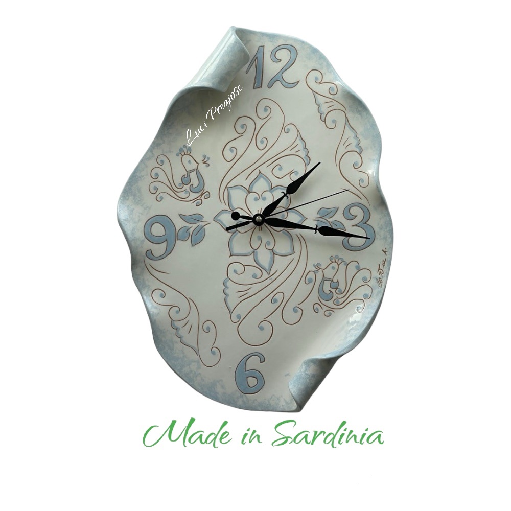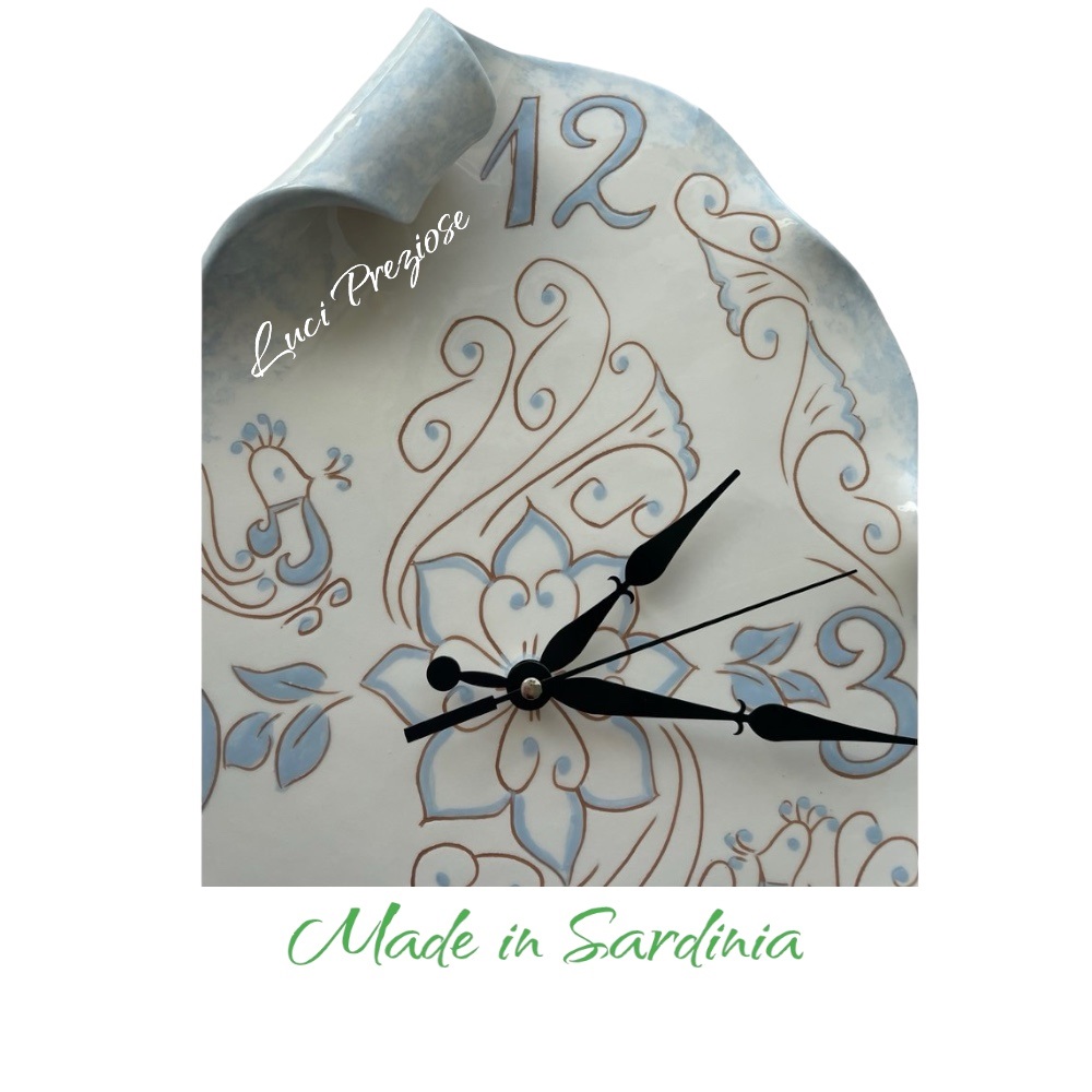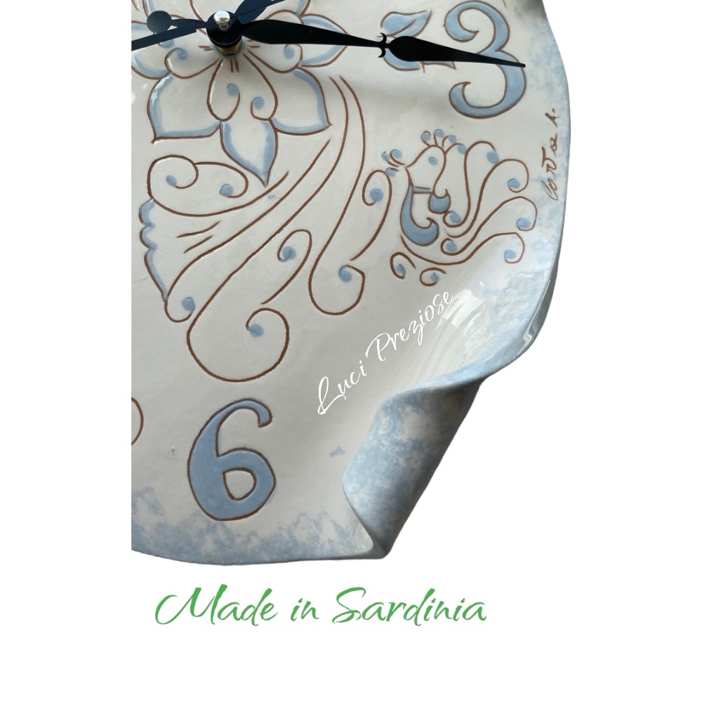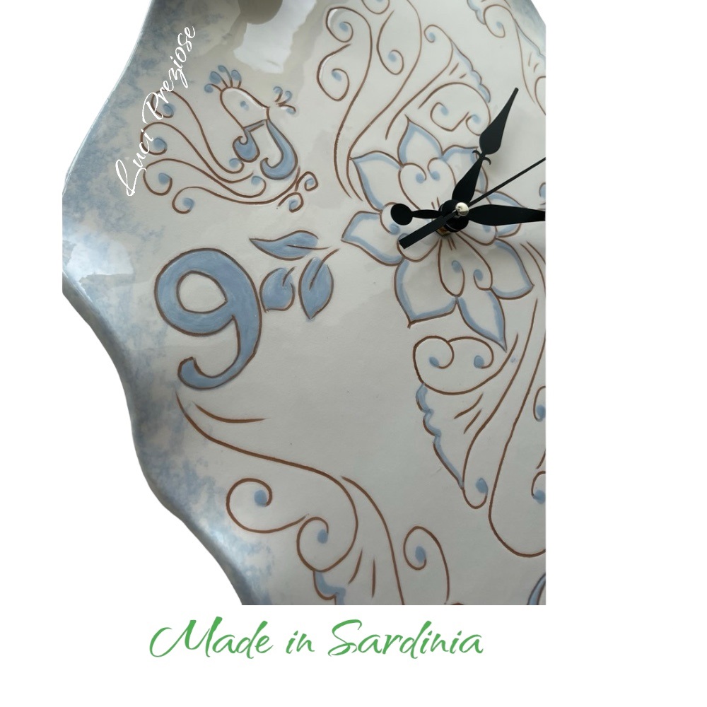 Ceramica lavorata e disegnata a mano nei colori bianco,cotto e celeste