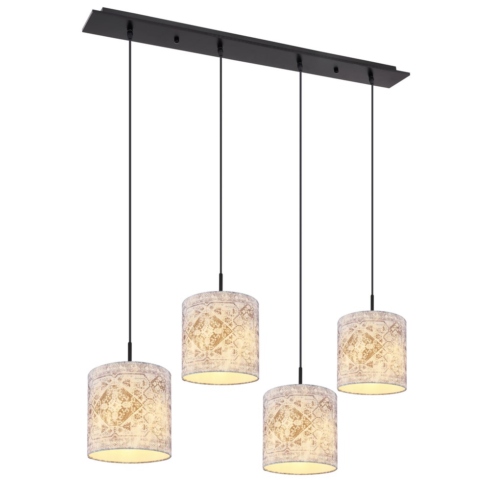 N.1 Sopspensione a 4 luci con capello in tessuto