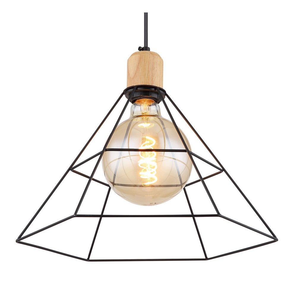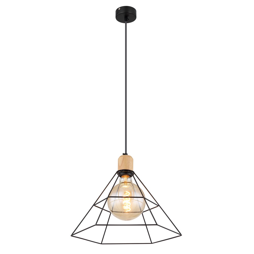 N.1 Sospensione a 1 luce in legno naturale e nero