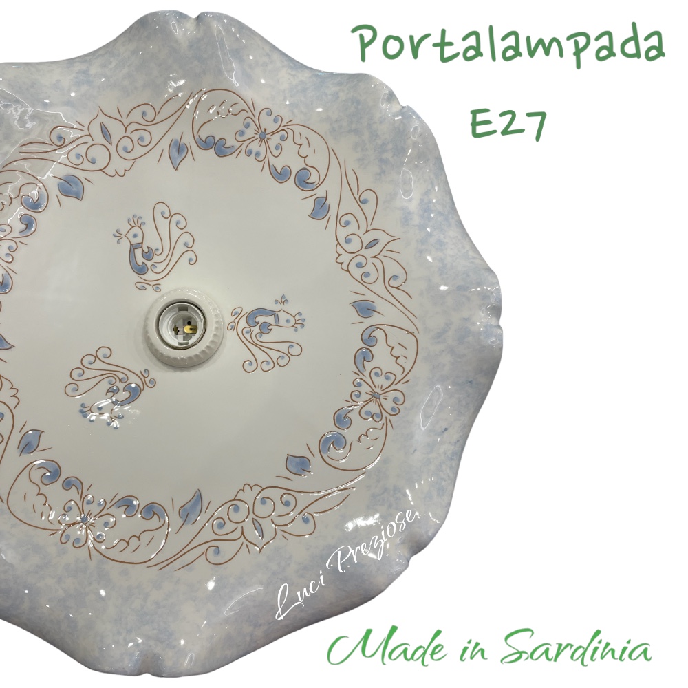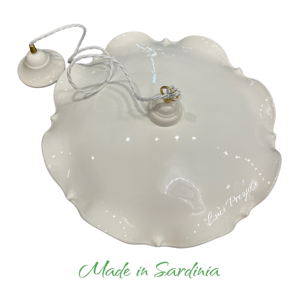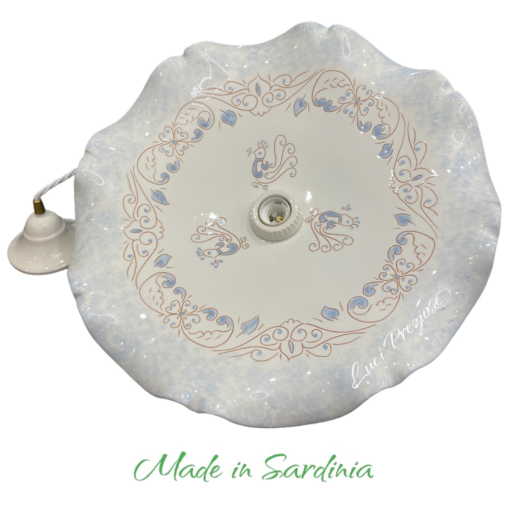 Ceramica lavorata e disegnata a mano nei colori panna cotto e celeste Montatura con filo treccia bianco regolabile - lunghezza max:105 cm