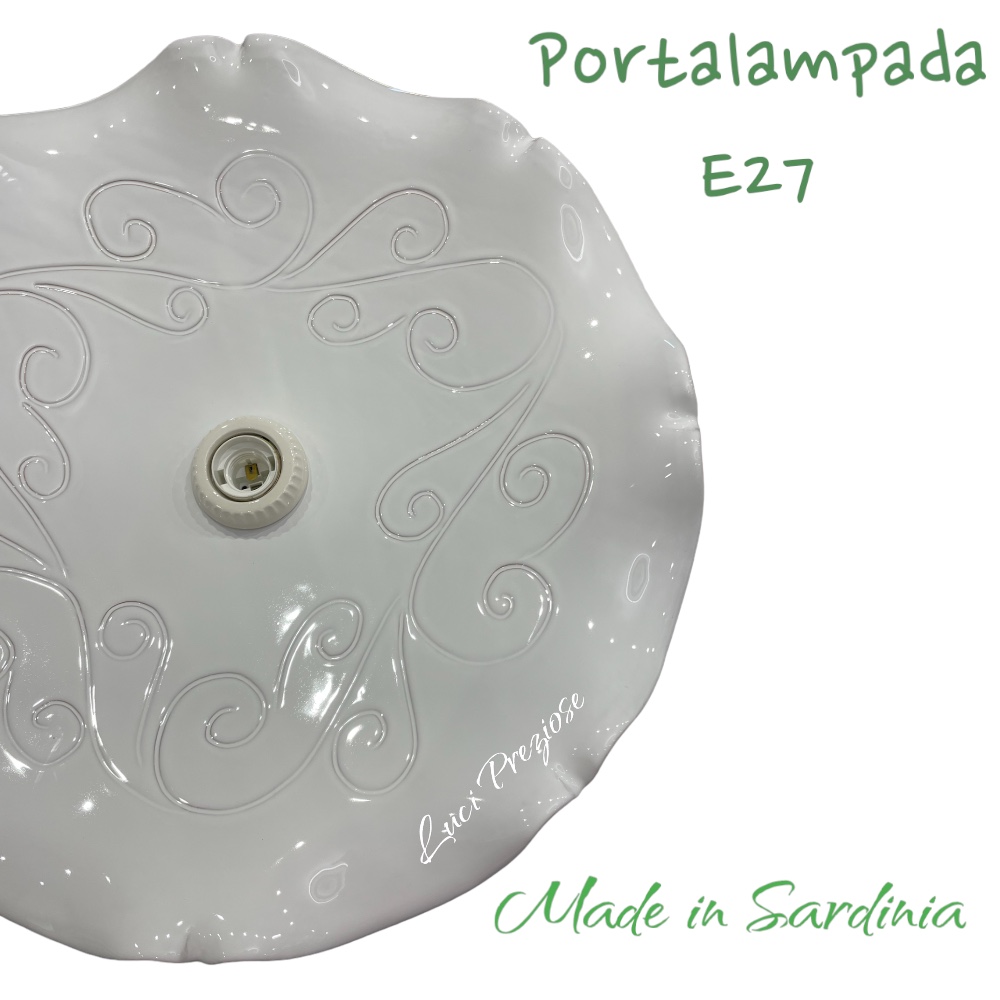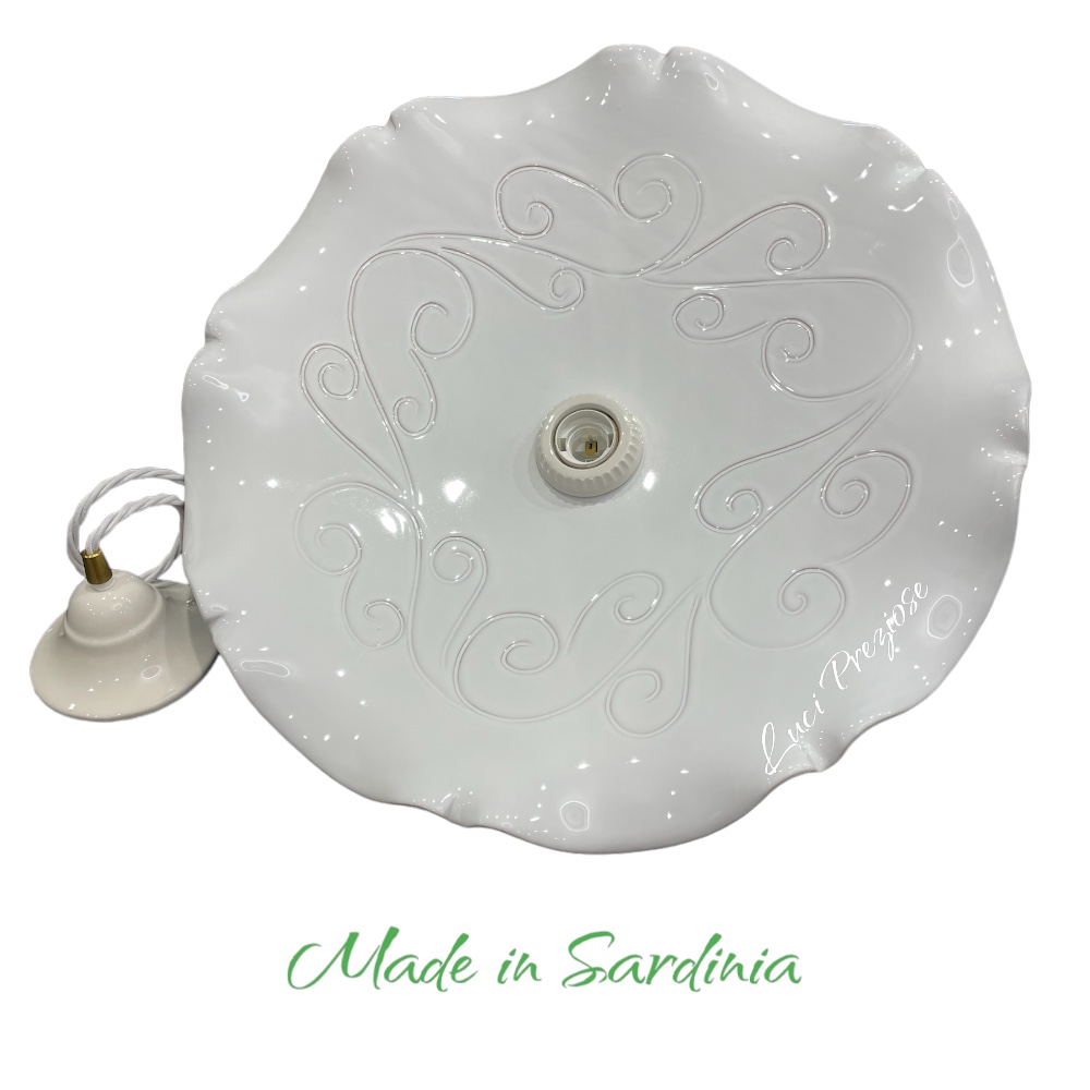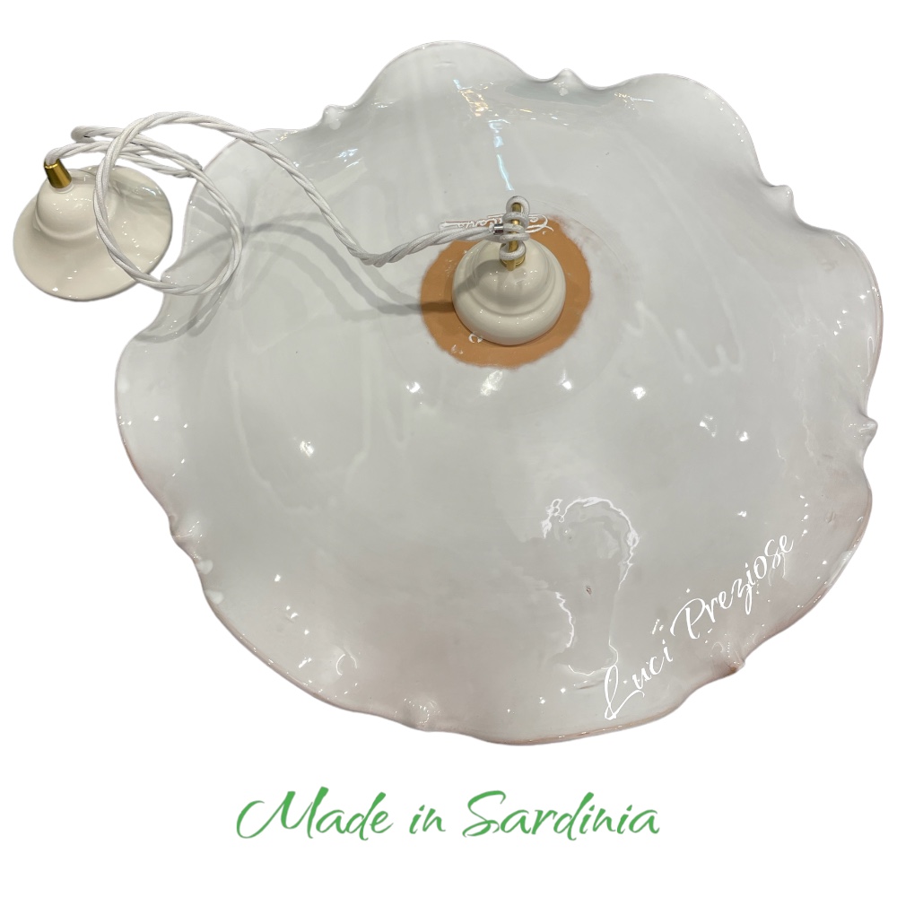 Ceramica lavorata e disegnata a mano nei colori bianco e cotto Montatura con filo treccia bianco regolabile - lunghezza max:105 cm