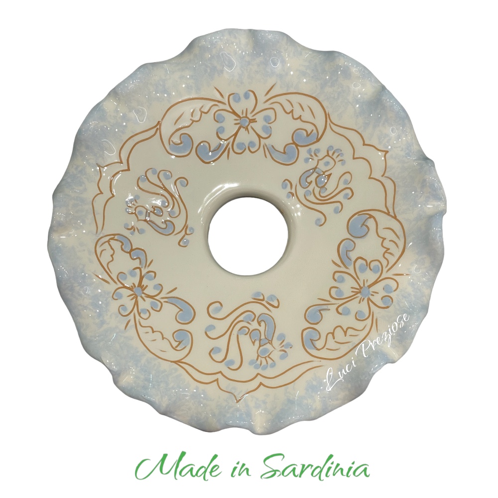 Piatto:ceramica lavorata e disegnata a mano nei colori bianco,cotto e celeste