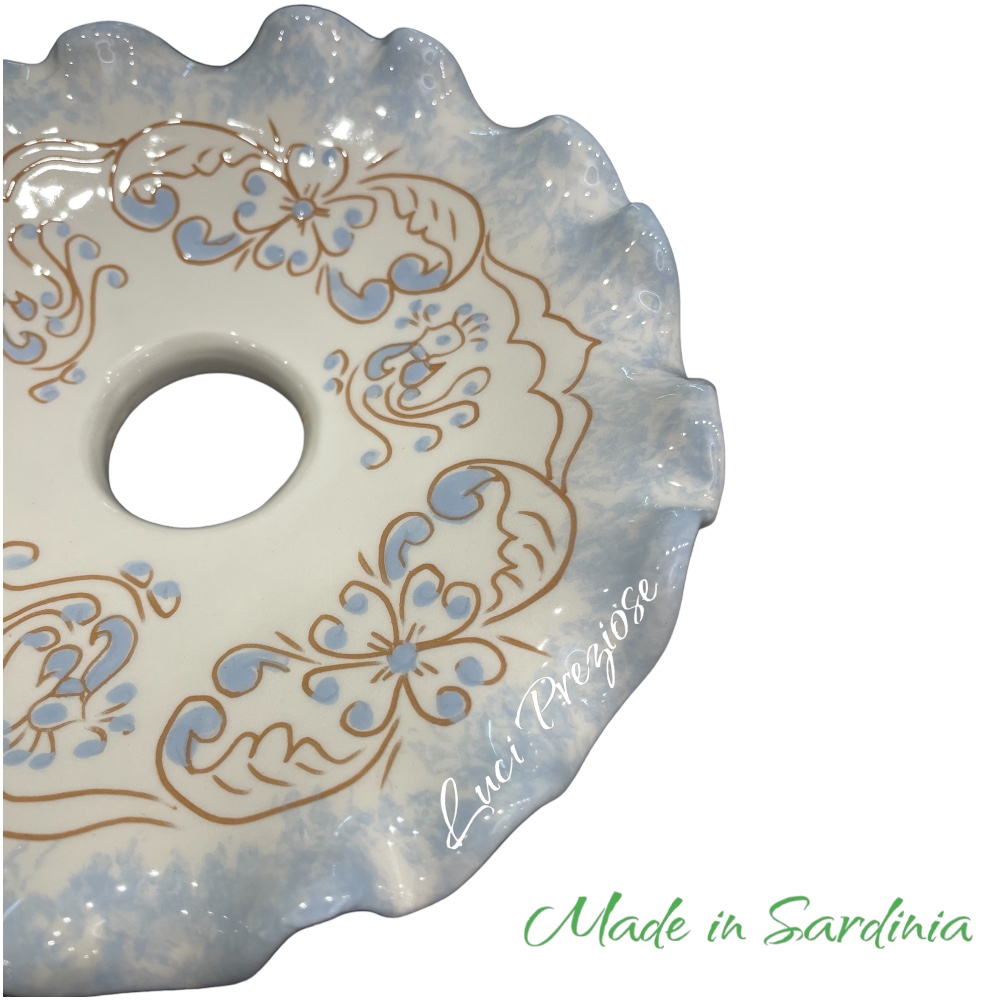 Piatto:ceramica lavorata e disegnata a mano nei colori bianco,cotto e celeste