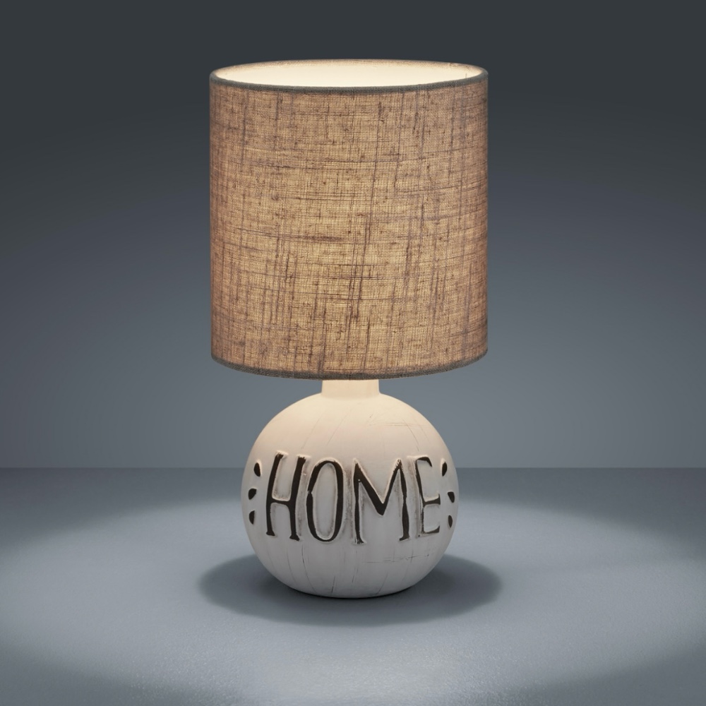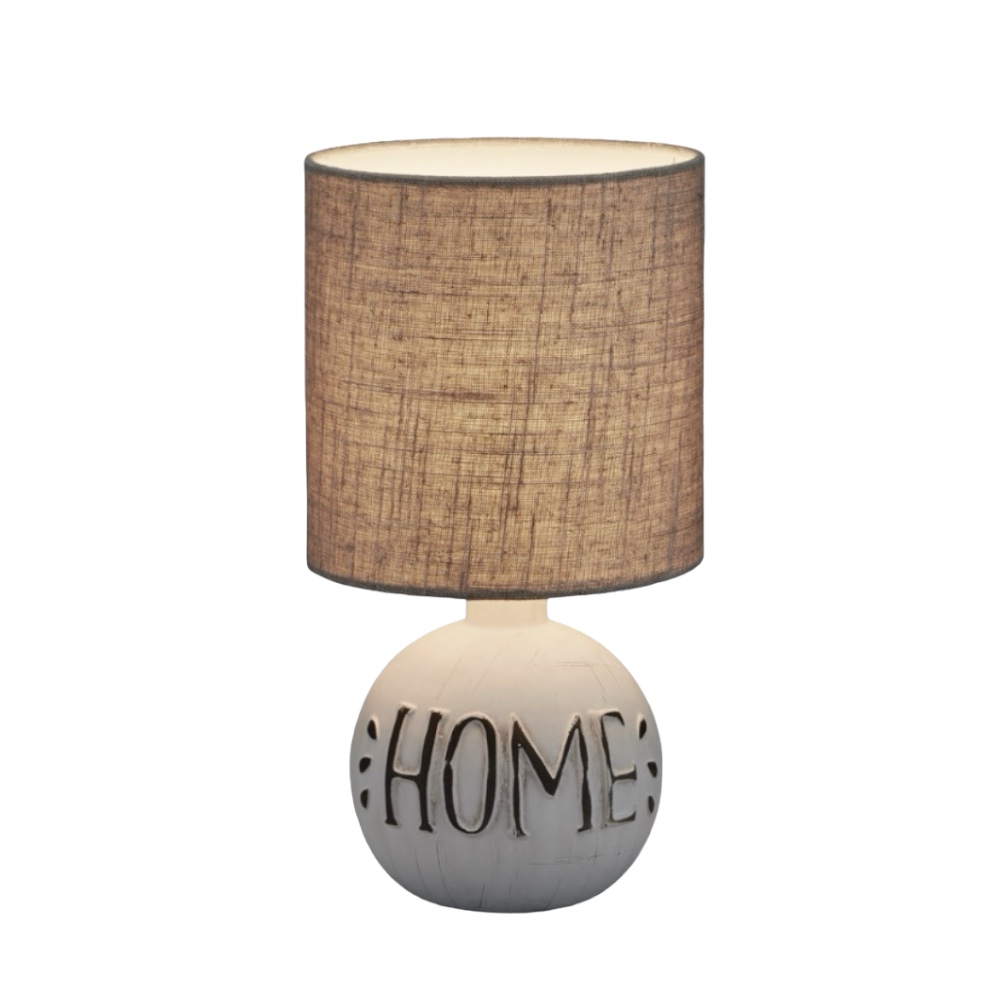 Base in ceramica begie con scritta "HOME"