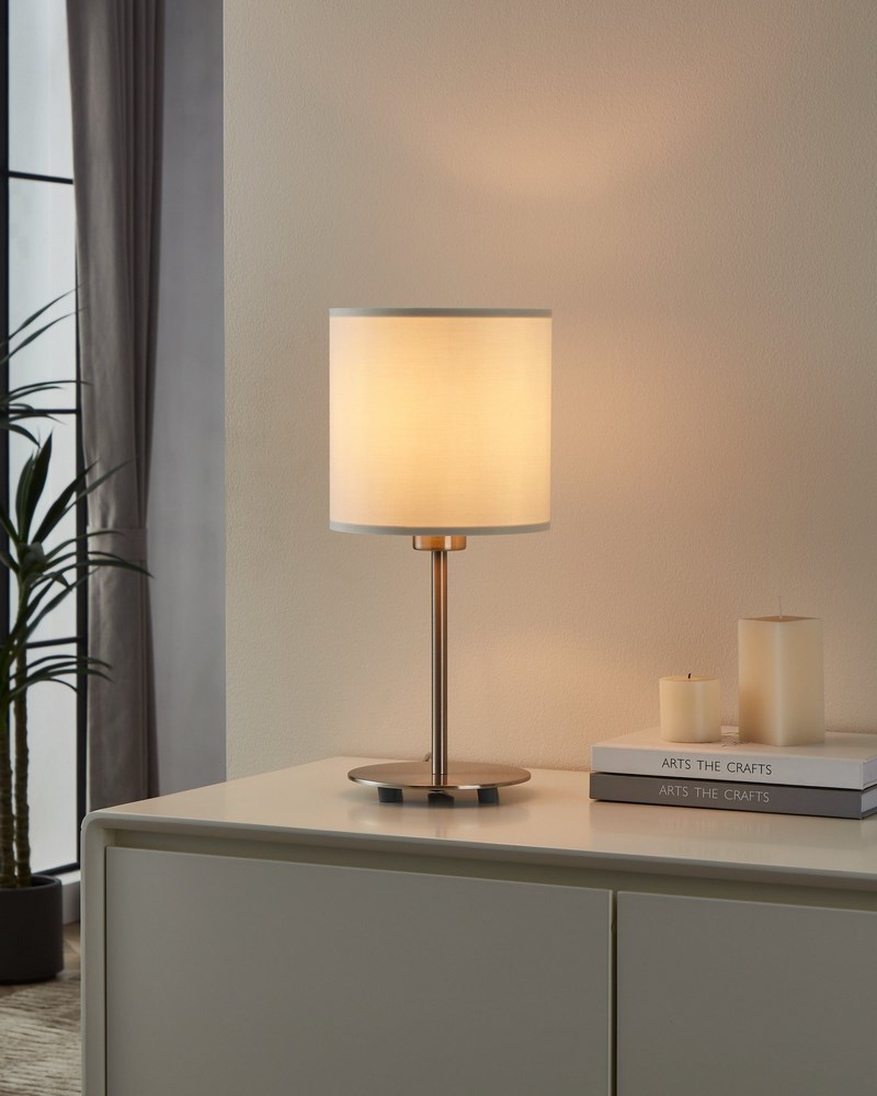 N.1 Lampada da tavolo in tessuto bianco