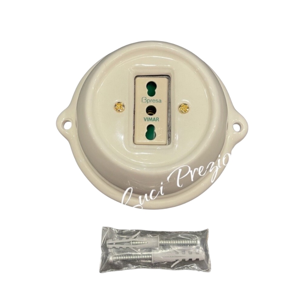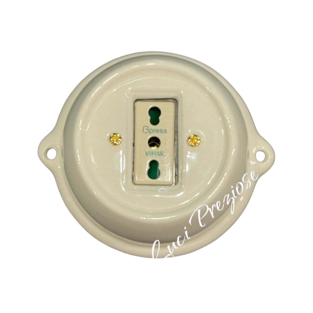 N.1 Presa bipasso italiana 10/16A da parete in ceramica artigianale.