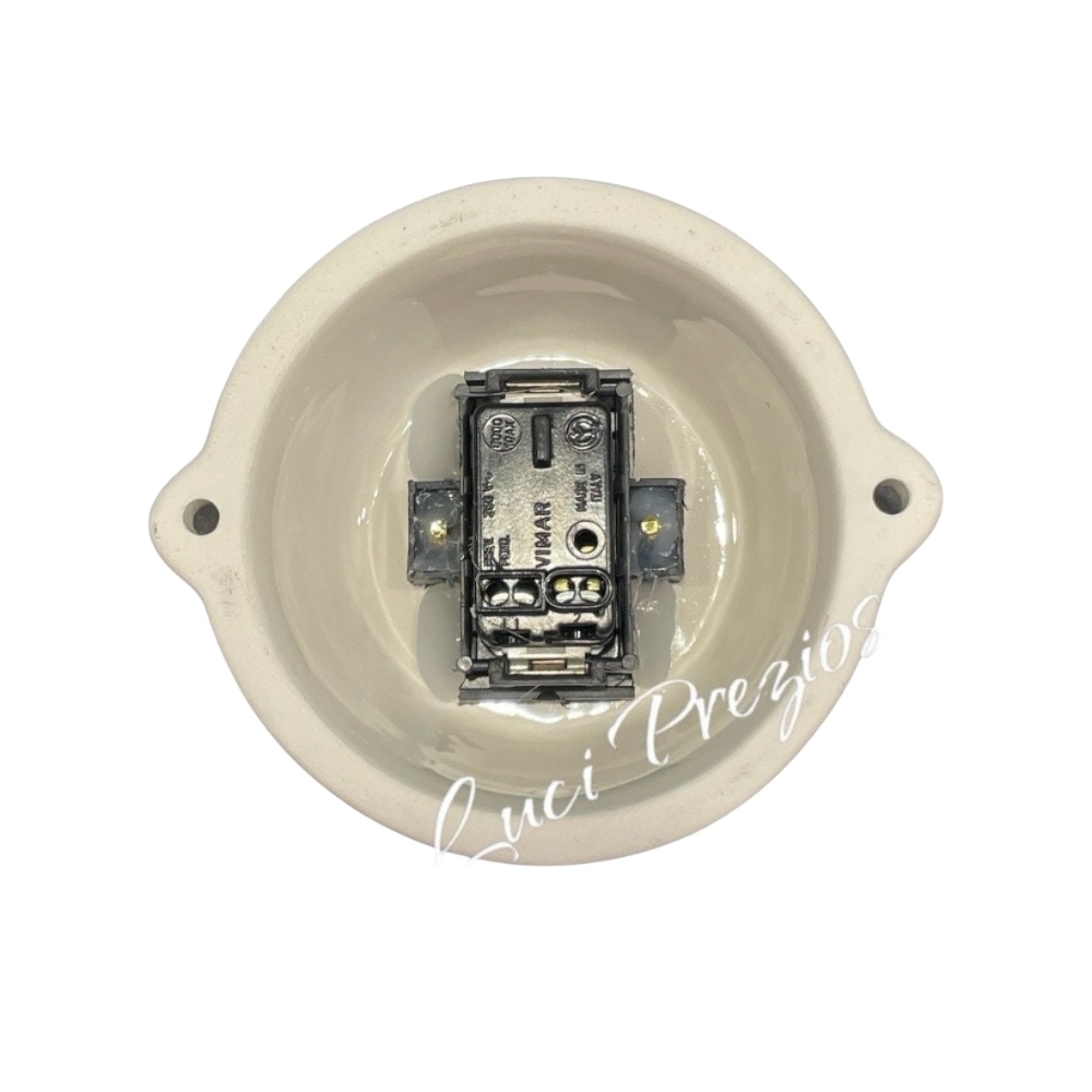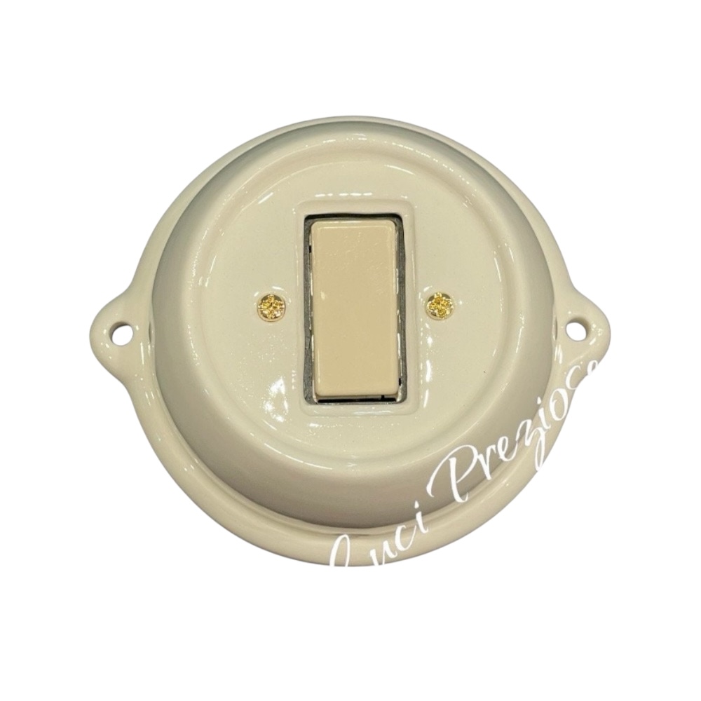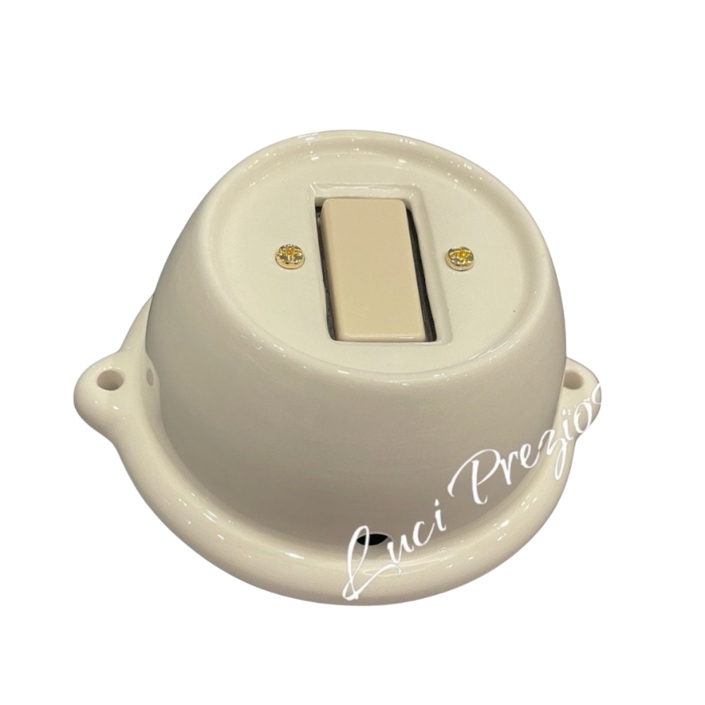 N.1 interruttore con frutto da 10A 250V da parete in ceramica artigianale.