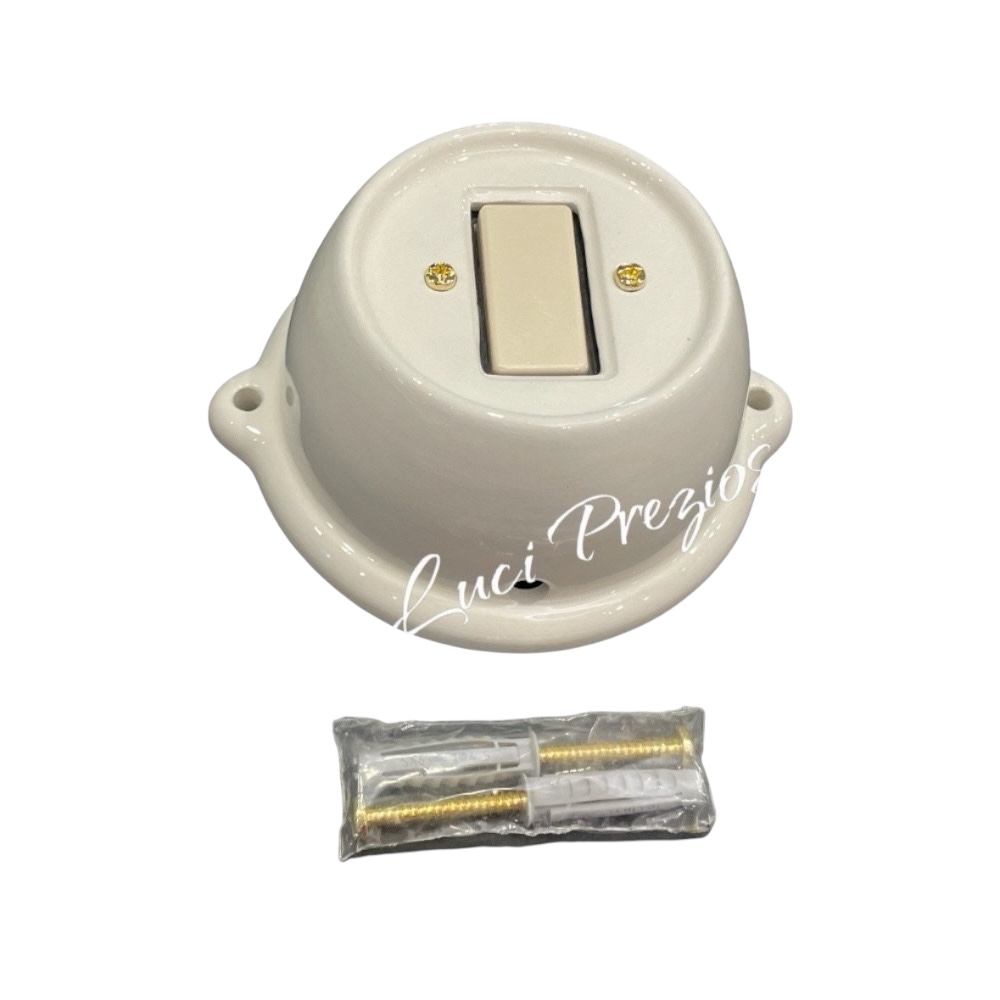 L'interruttore con frutto é un prodotto di alta qualità, ideale per chi vuole realizzare un impianto elettrico dall'aspetto vintage/moderno, con l'utilizzo del cavo treccia e degli isolatori in ceramica.