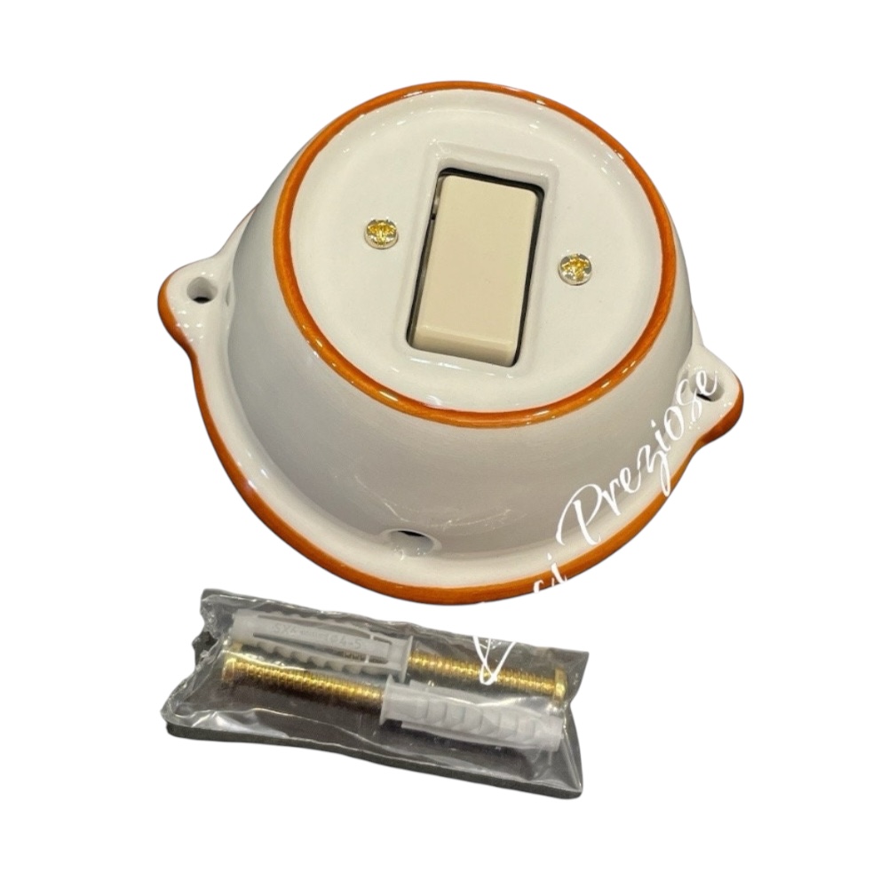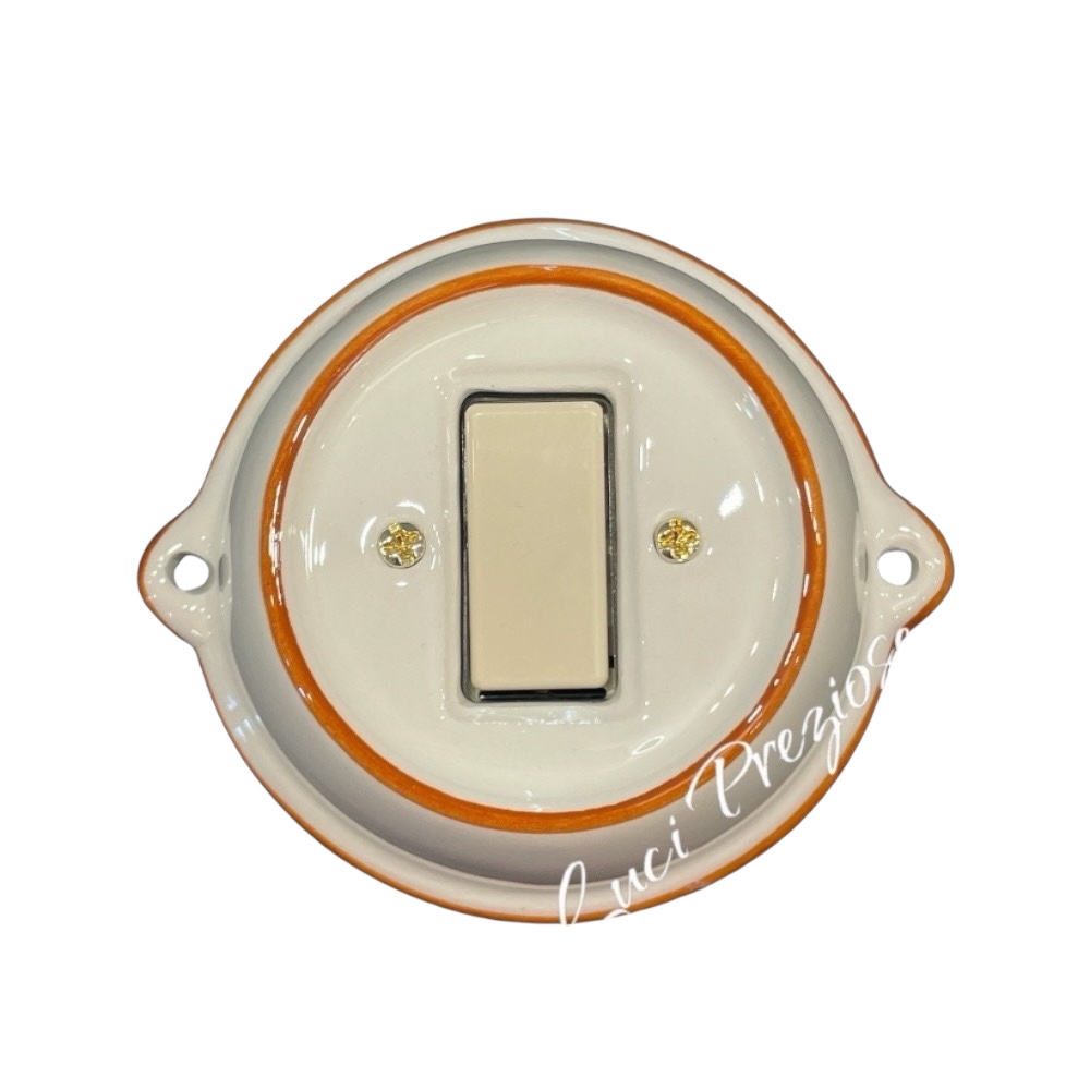 N.1 interruttore con frutto da 10A 250V da parete in ceramica artigianale.