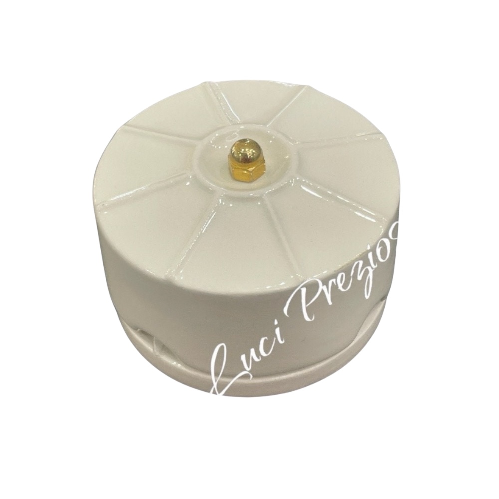 Ceramica lavorata nella colorazione bianca lucida con dadino in oro lucido