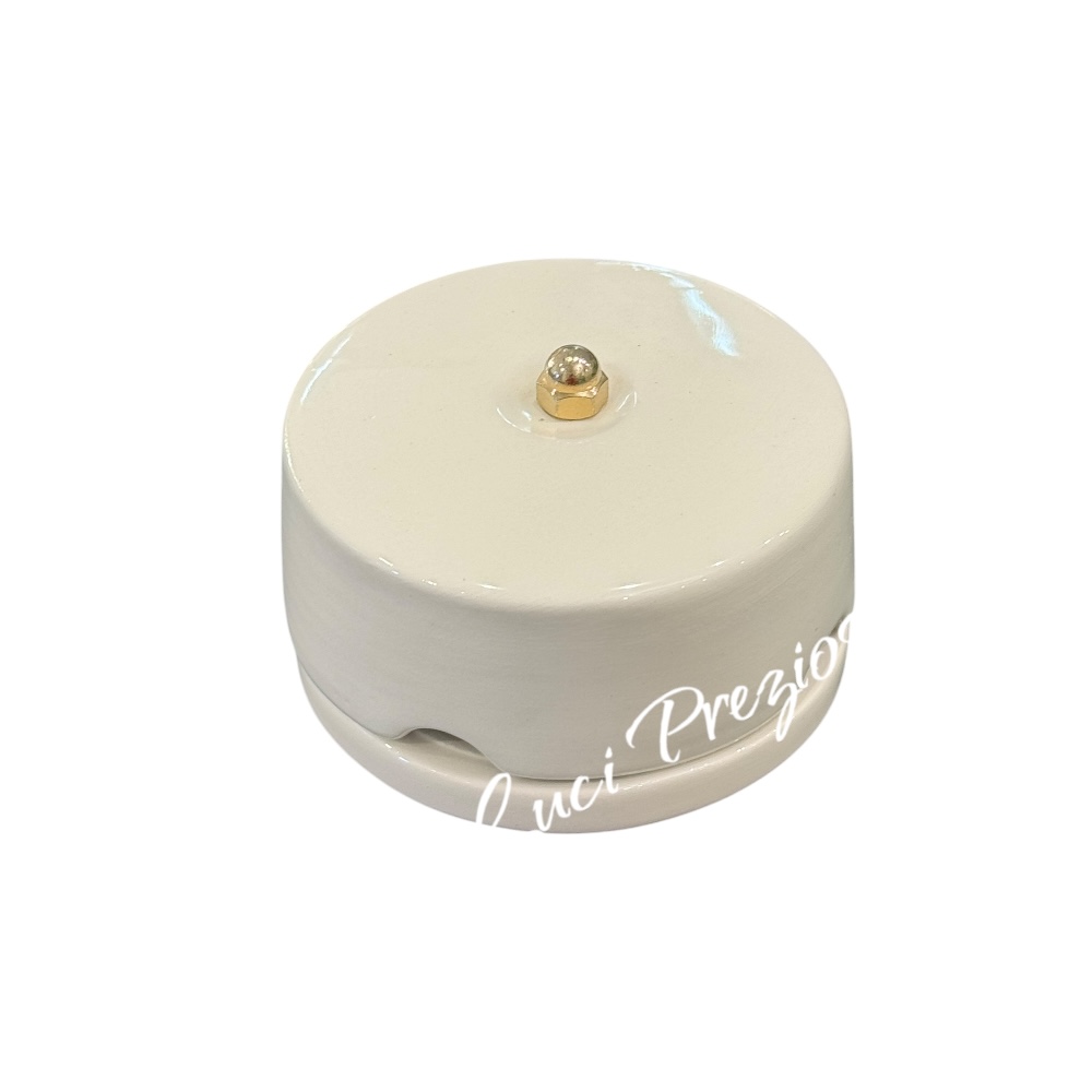 Ceramica lavorata nella colorazione bianca lucida con dadino in oro lucido