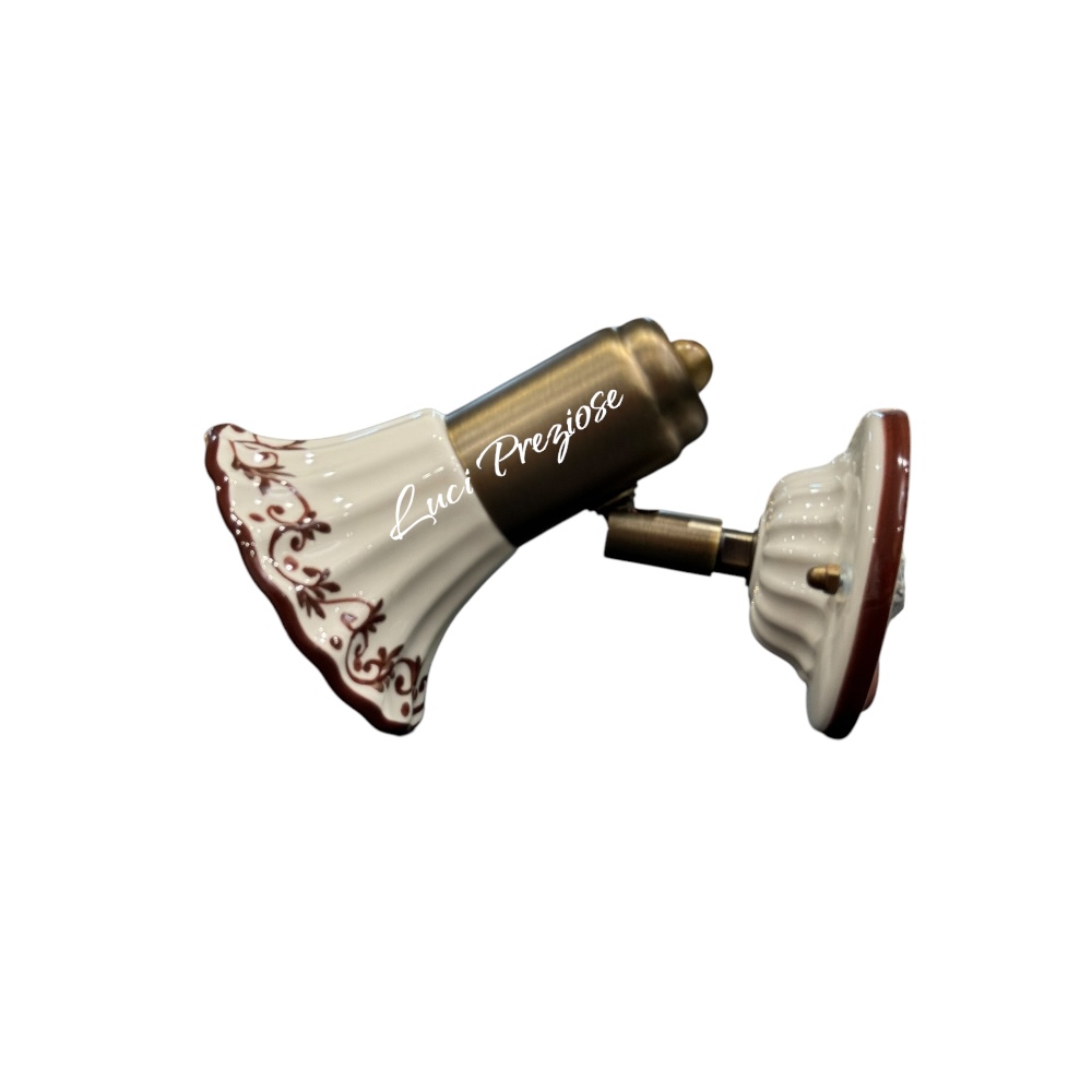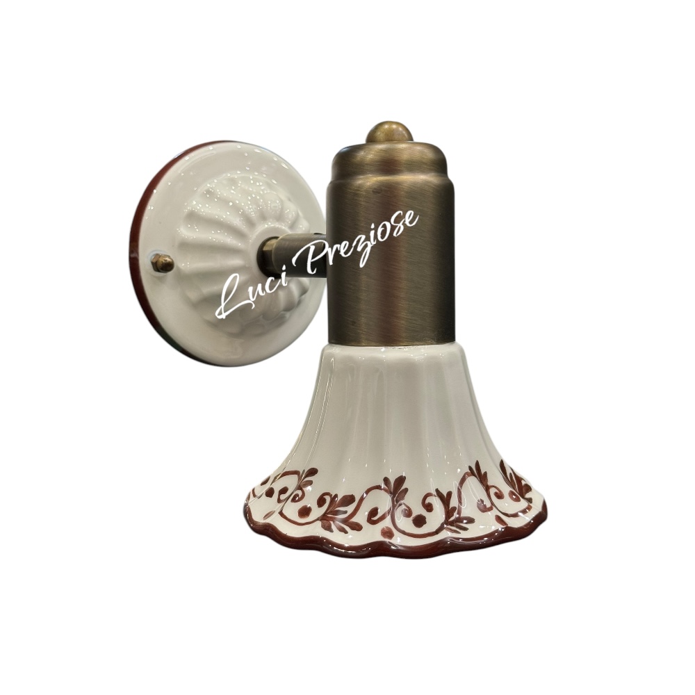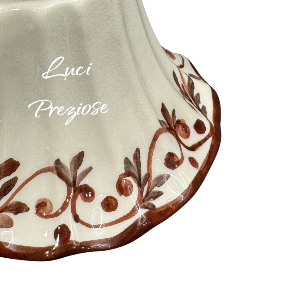 Cupola in ceramica bianca con decoro siena, filo marrone disegnato a mano