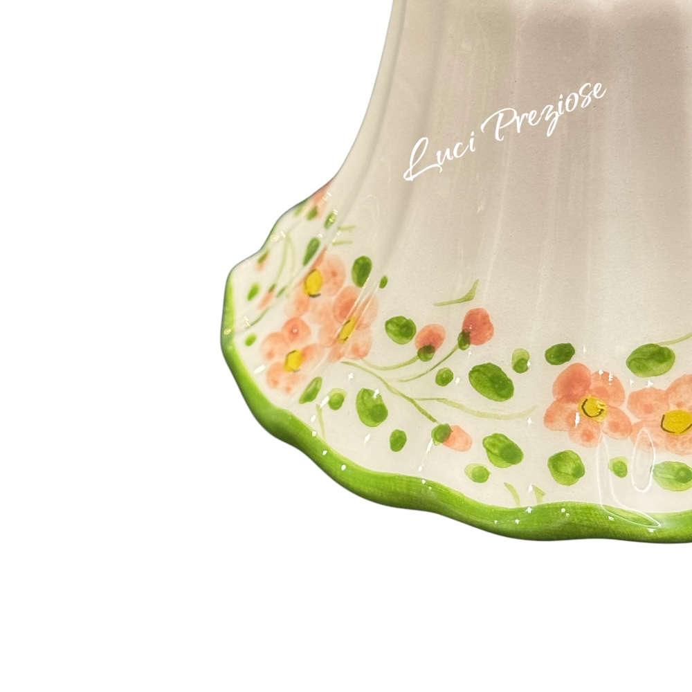 Cupola in ceramica bianca con decoro pesco, filo verde chiaro disegnato a mano