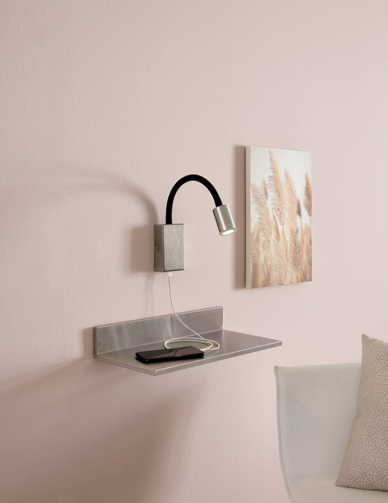 Base in alluminio colore acciaio satinato con interrutore ON/OFF + USB