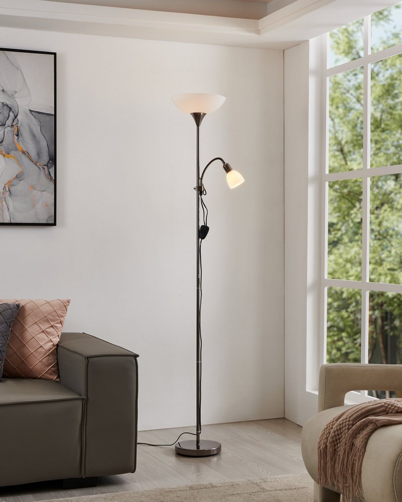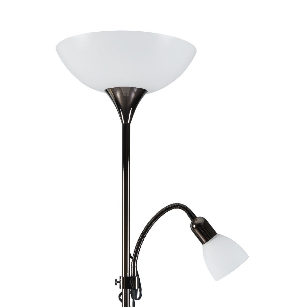Sullo stelo della lampada è presente un faretto in vetro bianco flessibile, perfetto e comodo per leggere un libro.