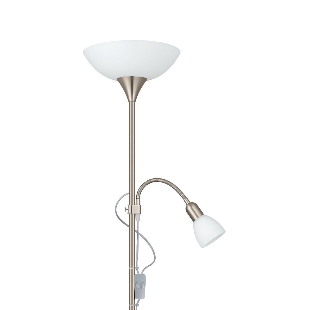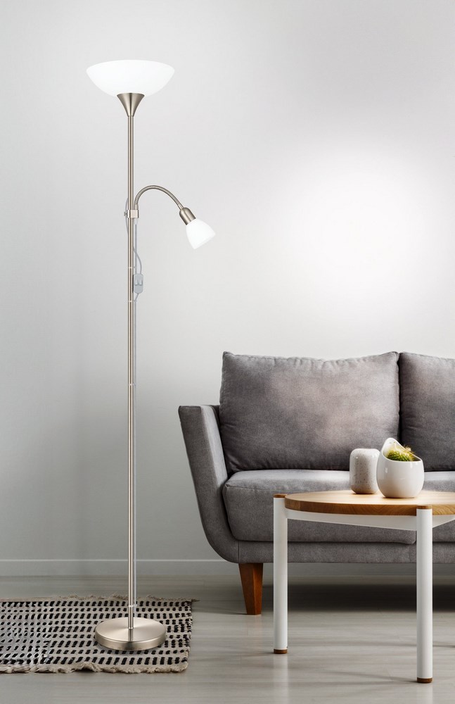 Sullo stelo della lampada è presente un faretto in vetro bianco flessibile, perfetto e comodo per leggere un libro.