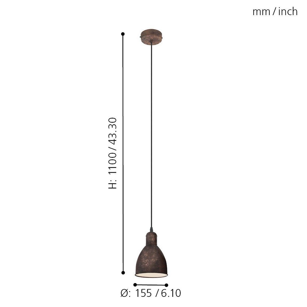 La sospensione é composta da una paralume in metallo di forma cupola in rame antico con l'interno colore crema