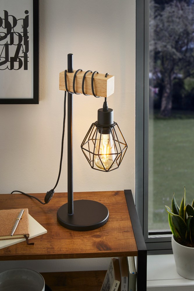 N.1 Lampada da tavolo a 1 luce stile nordico con trave di legno rovere