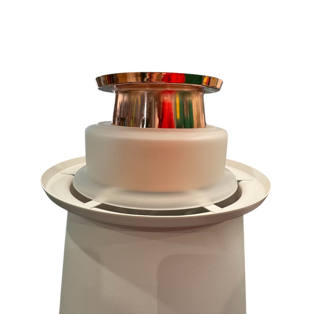 Tra la parte bianca opaca e quella in rame lucido c'è anche una parte in vetro bianco satinato