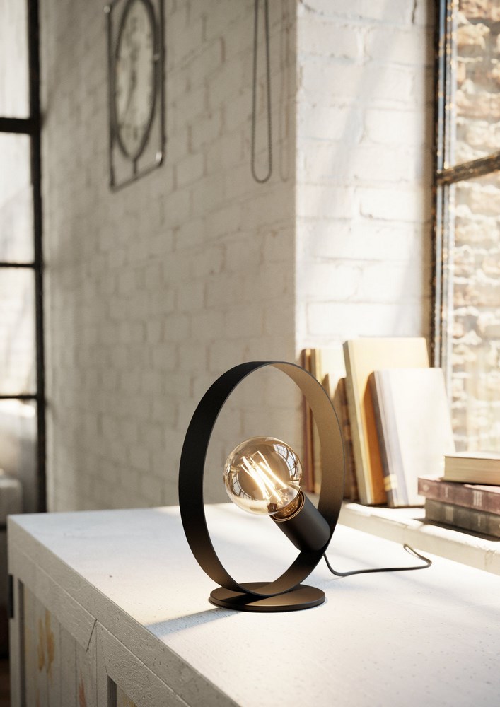 N.1 Lampada da tavolo a forma di cerchio nero opaco