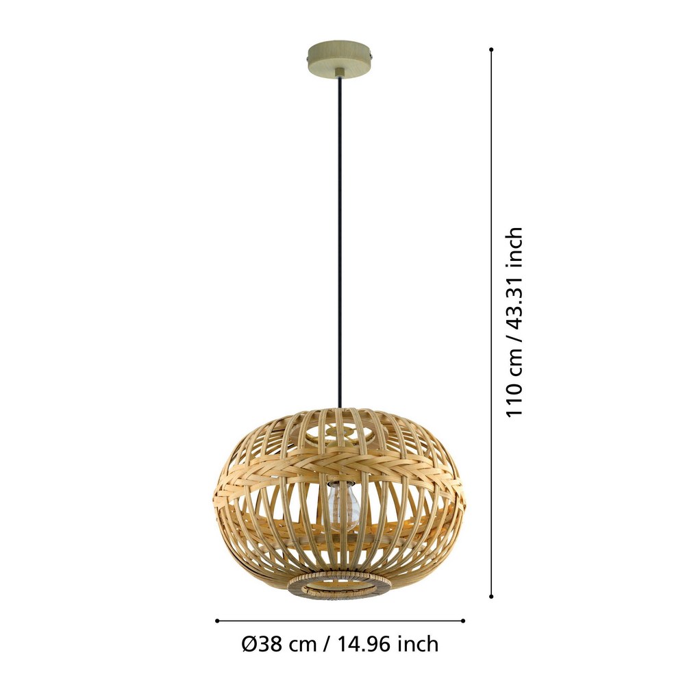 N.1 sospensione a 1 luce stile rattan-legno