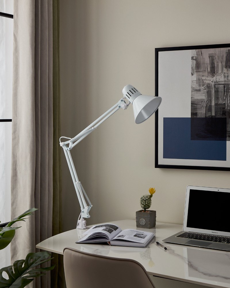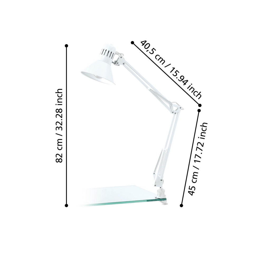 La lampada da tavolo é composta da una morsetto in plastica e metallo per bloccare la lampada in diverse superfici da tavolo o scaffale.